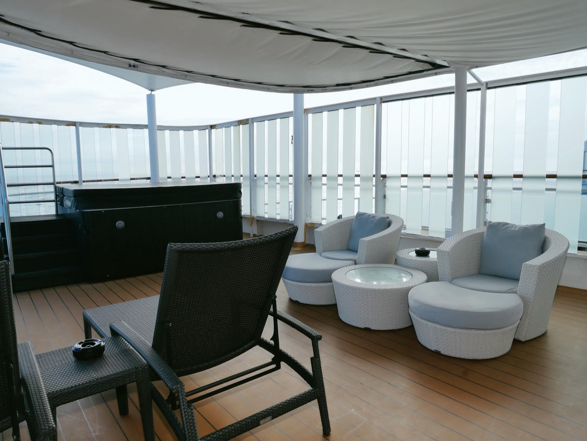 露臺房擁有私人露臺,可以隨時觀賞海景、享受陽光,還提供各種貴賓禮遇,如餐飲抵用金和專屬活動邀請。我們這次就是住這個房型,每天享受被陽光叫醒的清晨。